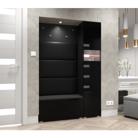 Teljes Prince smart előszoba gardróbszekrény magasfényű fekete termékleírás
