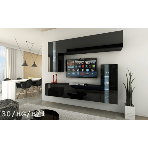 Prince Symetric CONCEPT 30 nappali bútor szett magasfényű fekete (219cm) bútor termékleírás