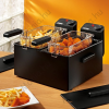 Olajsütő - mechanikus vezérlés, zománcozott, hidegzónás, hőmérséklet szabályozás, 1 program, kivehető edény a csomag része, 3600 W teljesítmény, 6 l-es űrtartalom, max. olajkapacitás 6 l, 2 fritőz kosár, 80 - 190 °C között szabályozható hőmérséklet, kábel hossza 0,9 m, tömege 4,97 kg, mérete 24 × 44 × 42 cm (Ma×Sz×Mé), fekete kivitel Ne rohand fast food étterembe, hogy ha ropogós csirkeszárnyat és aranysárgára sült hasábburgonyát kívánsz. A minős