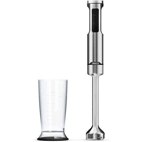 Botmixer - 1500 W teljesítmény, 5 sebességfokozat, folyamatos sebességvezérlés a gomb nyomvatartásával és turbo sebesség, jégtörés és mixelés, 4 penge, keverőedény és mérőedény mellékelve, rozsdamentes acél keverőszár Az igazán praktikus Princess merülő botmixer kicsi helyen is elfér, mégis könnyedén készíthetsz vele mártásokat, turmixokat, kásákat vagy tört jeget. A hatékony működés érdekében egy négyszárnyú késse