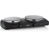 Villanyrezsó - 2000 W teljesítmény, 2 db főzőzóna, 19 cm átmérőjű főzőzóna, 1 főzési mód, funkciók: termosztát, túlmelegedés elleni védelem, csúszásgátló talpak, működést jelző lámpa és hőmérséklet beállítása, fekete színű, mérete 28 cm x 49 cm x 7 cm A Princess 303021 kerámia elektromos tűzhely 16 és 19 cm átmérőjű főzőlapokkal van felszerelve. A készülék két különálló termosztáttal rendelkezik, mindegyik főzőlaphoz külön-külön,