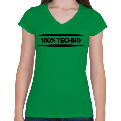 1 kép PRINTFASHION 100% techno - Női V-nyakú póló - Zöld