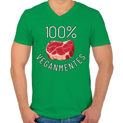 1 kép PRINTFASHION 100% VEGÁNMENTES - Férfi V-nyakú póló - Zöld