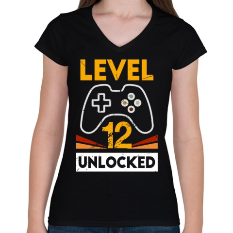 1 kép PRINTFASHION 12-es szint feloldva - Női V-nyakú póló - Fekete