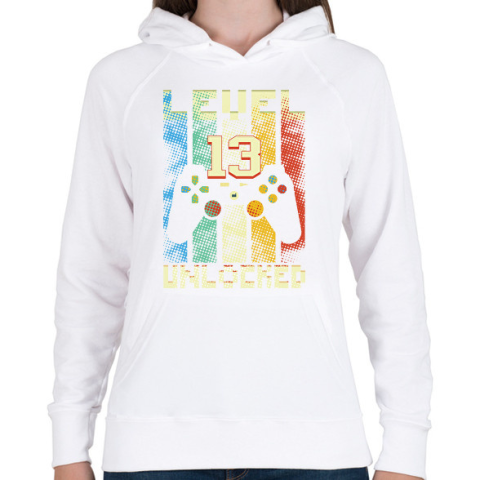 1 kép PRINTFASHION 13. szint feloldva születésnapi ajándék - Női kapucnis pulóver - Fehér