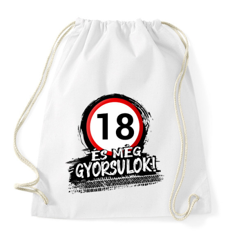 1 kép PRINTFASHION 18 születésnap és még gyorsulok - Sportzsák, Tornazsák - Fehér
