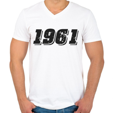 1 kép PRINTFASHION 1961 - Férfi V-nyakú póló - Fehér