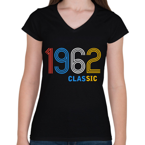 1 kép PRINTFASHION 1962 - Női V-nyakú póló - Fekete