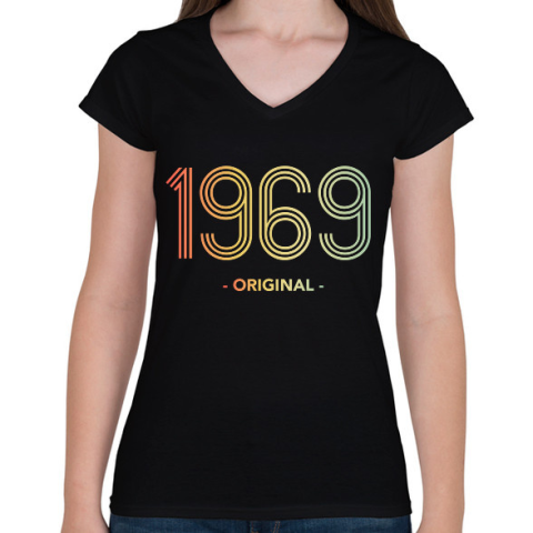 1 kép PRINTFASHION 1969 - Női V-nyakú póló - Fekete