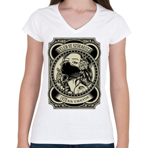 1 kép PRINTFASHION 1972 Velem ne szórakozz - Női V-nyakú póló - Fehér
