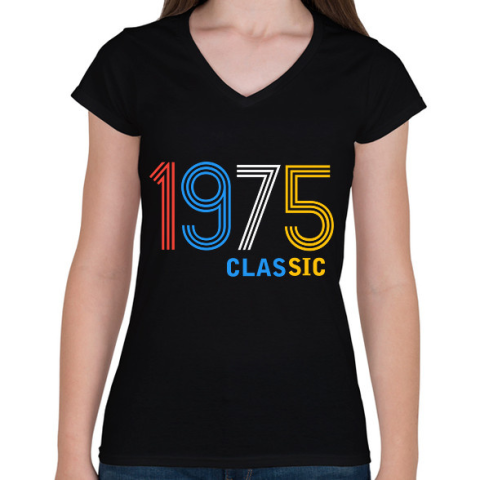 1 kép PRINTFASHION 1975 - Női V-nyakú póló - Fekete