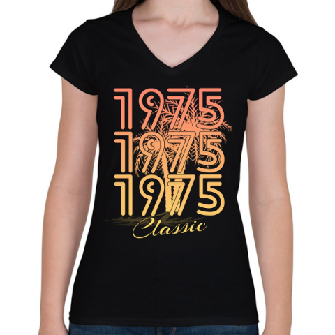 1 kép PRINTFASHION 1975 - Női V-nyakú póló - Fekete