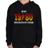 1 kép PRINTFASHION 1980 JÚLIUS - LEGENDA SZÜLETIK (ACDC STÍLUS) - Gyerek kapucnis pulóver - Fekete