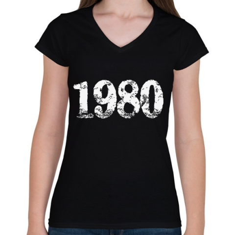 1 kép PRINTFASHION 1980 - Női V-nyakú póló - Fekete