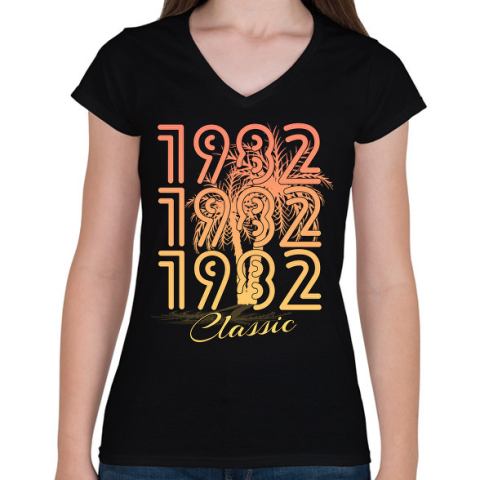 1 kép PRINTFASHION 1982 - Női V-nyakú póló - Fekete