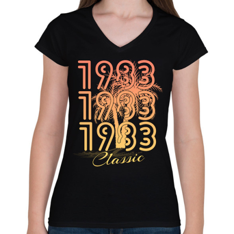 1 kép PRINTFASHION 1983 - Női V-nyakú póló - Fekete