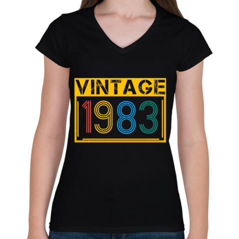 1 kép PRINTFASHION 1983 - Női V-nyakú póló - Fekete