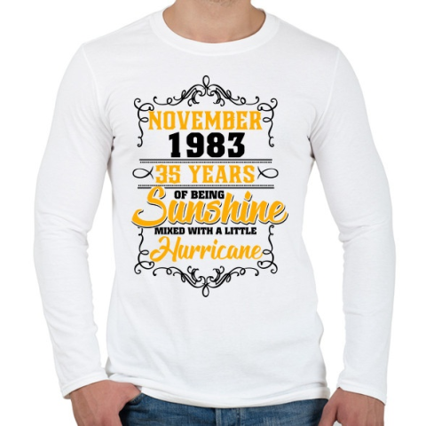 1 kép PRINTFASHION 1983 Születésnap - Napfény egy kis hurrikánnal! - Férfi hosszú ujjú póló - Fehér