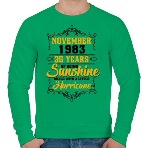1 kép PRINTFASHION 1983 Születésnap - Napfény egy kis hurrikánnal! - Férfi pulóver - Zöld