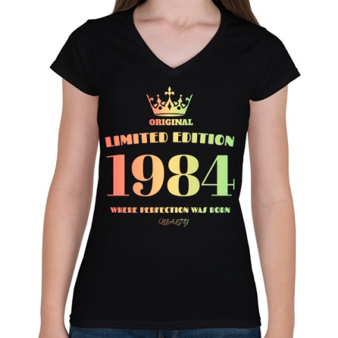 1 kép PRINTFASHION 1984 - Női V-nyakú póló - Fekete