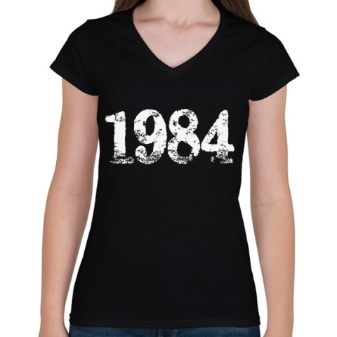 1 kép PRINTFASHION 1984 - Női V-nyakú póló - Fekete