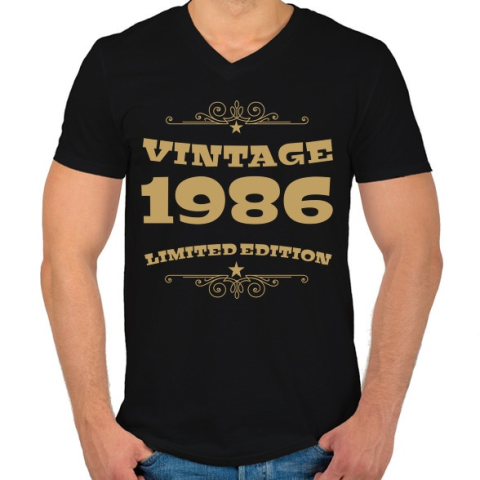 1 kép PRINTFASHION 1986 - Férfi V-nyakú póló - Fekete
