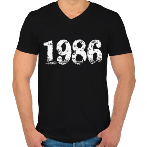 1 kép PRINTFASHION 1986 - Férfi V-nyakú póló - Fekete