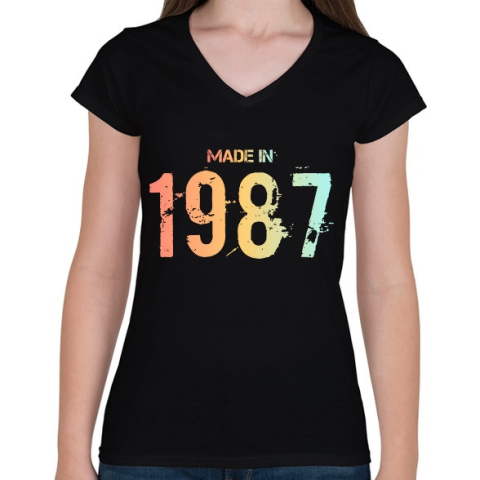 1 kép PRINTFASHION 1987 - Női V-nyakú póló - Fekete