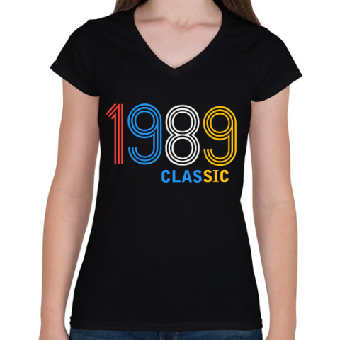 1 kép PRINTFASHION 1989 - Női V-nyakú póló - Fekete