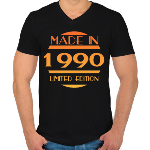 1 kép PRINTFASHION 1990 - Férfi V-nyakú póló - Fekete