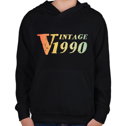 1 kép PRINTFASHION 1990 - Gyerek kapucnis pulóver - Fekete