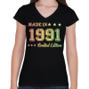 1 kép PRINTFASHION 1991 - Női V-nyakú póló - Fekete