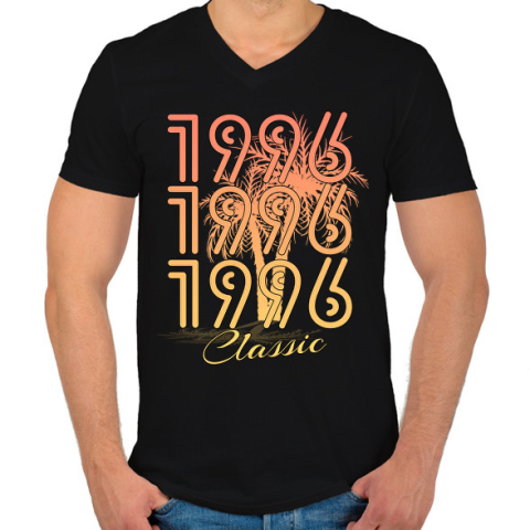 1 kép PRINTFASHION 1996 - Férfi V-nyakú póló - Fekete