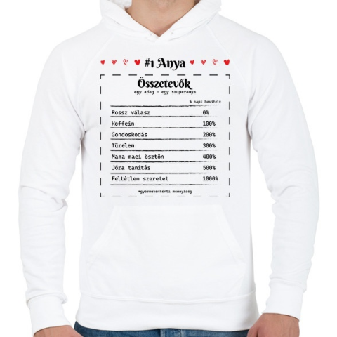 1 kép PRINTFASHION #1 Anya összetevők - Férfi kapucnis pulóver - Fehér