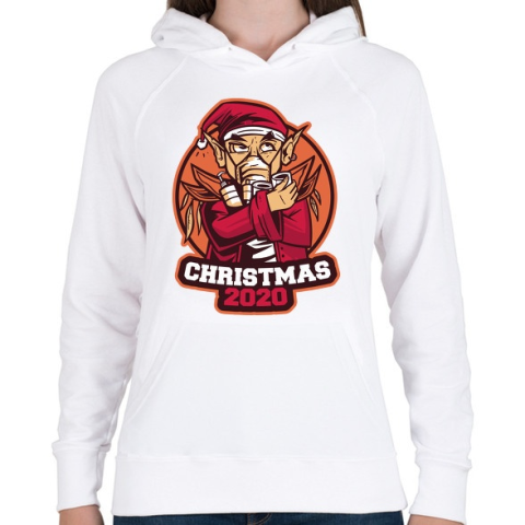 1 kép PRINTFASHION 2020 Karácsony mikulás maszkban - Női kapucnis pulóver - Fehér