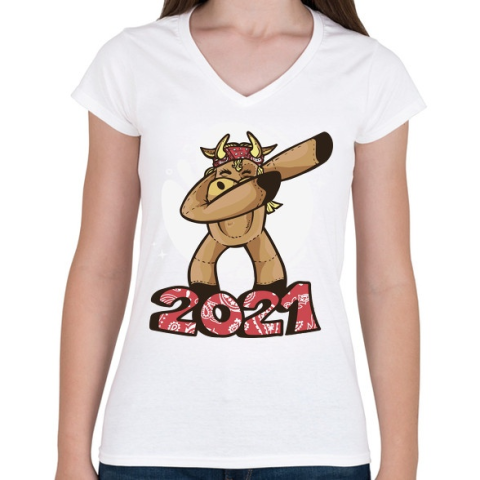 1 kép PRINTFASHION 2021 táncoló tehén - Női V-nyakú póló - Fehér
