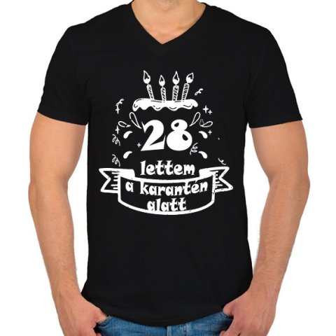 1 kép PRINTFASHION 28 lettem - Férfi V-nyakú póló - Fekete
