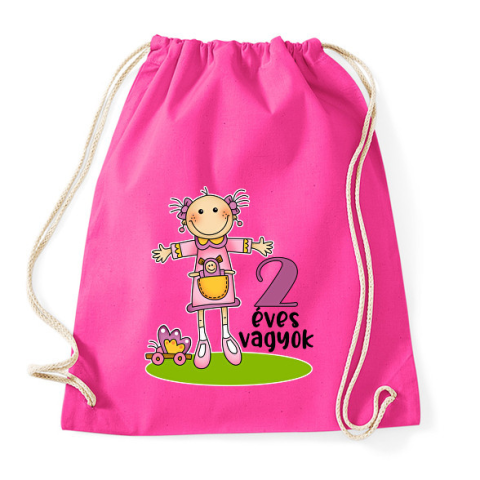 1 kép PRINTFASHION "2 éves vagyok" kislányoknak - Sportzsák, Tornazsák - Fukszia