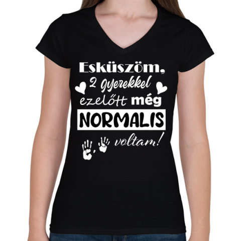 1 kép PRINTFASHION 2 gyerekkel ezelőtt normális voltam - Női V-nyakú póló - Fekete