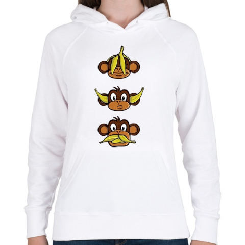1 kép PRINTFASHION 3 Bölcs majom - Női kapucnis pulóver - Fehér