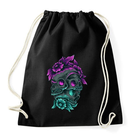 1 kép PRINTFASHION 3 koponya virágokkal - Sportzsák, Tornazsák - Fekete