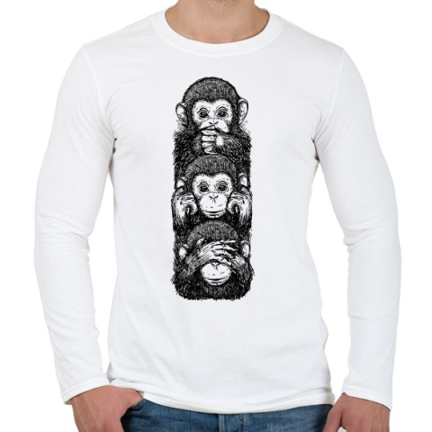 1 kép PRINTFASHION 3 majom - Férfi hosszú ujjú póló - Fehér