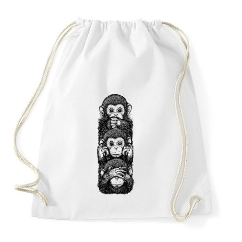 1 kép PRINTFASHION 3 majom - Sportzsák, Tornazsák - Fehér