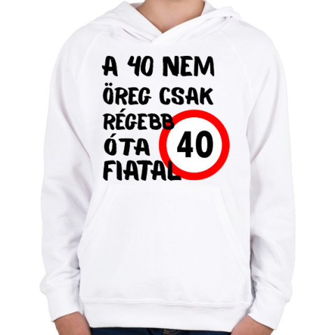 1 kép PRINTFASHION 40 éves Fekete minta - Gyerek kapucnis pulóver - Fehér