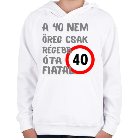 1 kép PRINTFASHION 40 éves Sz. - Gyerek kapucnis pulóver - Fehér
