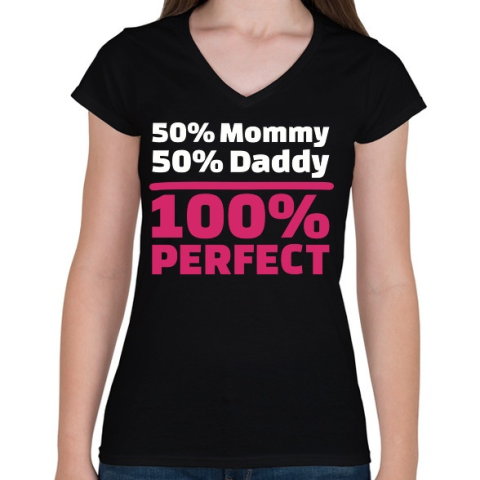 1 kép PRINTFASHION 50% Anya, 50% Apa - Női V-nyakú póló - Fekete