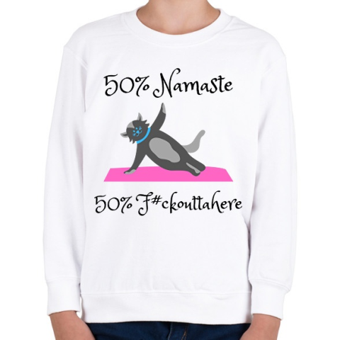 1 kép PRINTFASHION 50% NAMASTE 50% F#CK OUTTA HERE - Gyerek pulóver - Fehér