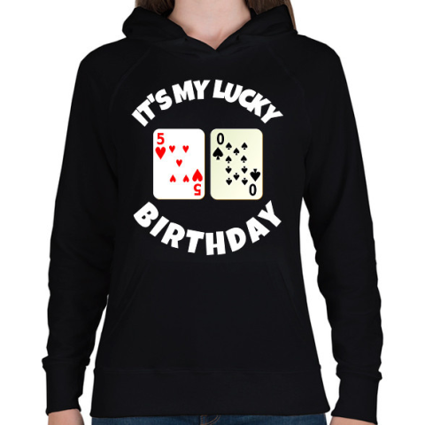 1 kép PRINTFASHION 50 POKER SZÜLINAP - Női kapucnis pulóver - Fekete