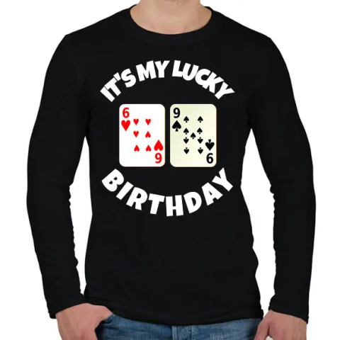 1 kép PRINTFASHION 69 POKER SZÜLINAP - Férfi hosszú ujjú póló - Fekete