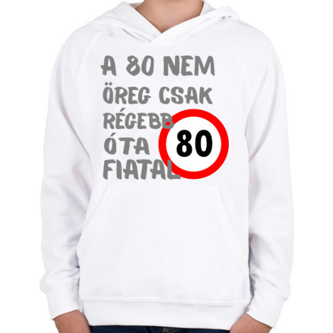 1 kép PRINTFASHION 80 éves szürke - Gyerek kapucnis pulóver - Fehér